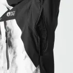 The JOMOH JKT is designed to tackle the elements with style and functionality while you ride. This 2-layer jacket, certified by GRS (Global Recycled Standard) and Oeko-Tex® Standard 100, meets strict standards for sustainable and ethical production. Equipped with Dryplay 10K technology and a PFC-free Teflon Ecoelite™ water-repellent coating, this jacket ensures both waterproofness and breathability, keeping you comfortable and dry during your mountain adventures. The functional features are numerous, including an ergonomic hood with a unique adjustment system, hand pockets, and a chest pocket, all with zippers under flaps for better water resistance. It also has underarm ventilation zips and an adjustable hem with a drawstring. The integrated snow skirt, ski pass pocket, and inner mesh pocket complete the model.
